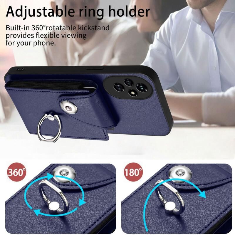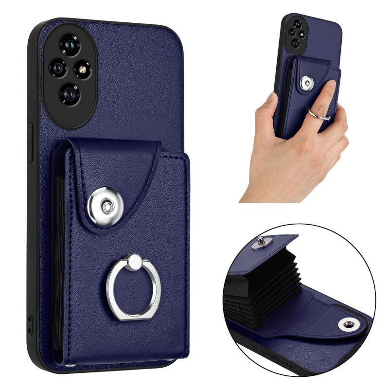Για Honor 200 Pro 5G Οργάνων κάρτα τσάντα δαχτυλίδι κάτοχος PU τηλέφωνο υπόθεση (μπλε)
