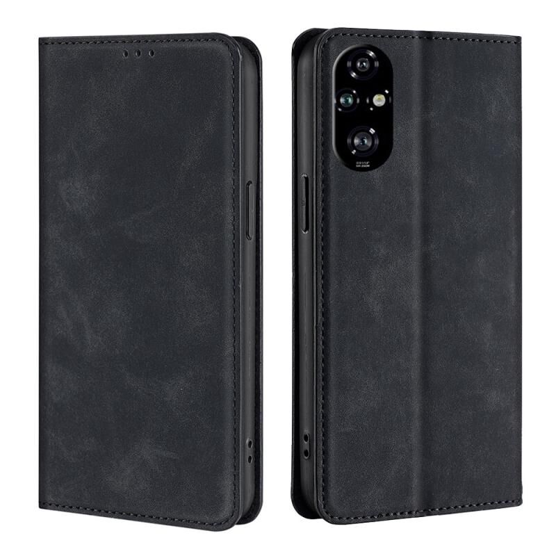 Για Honor 200 Pro 5G Skin Feel μαγνητική δερμάτινη θήκη τηλεφώνου (μαύρο)