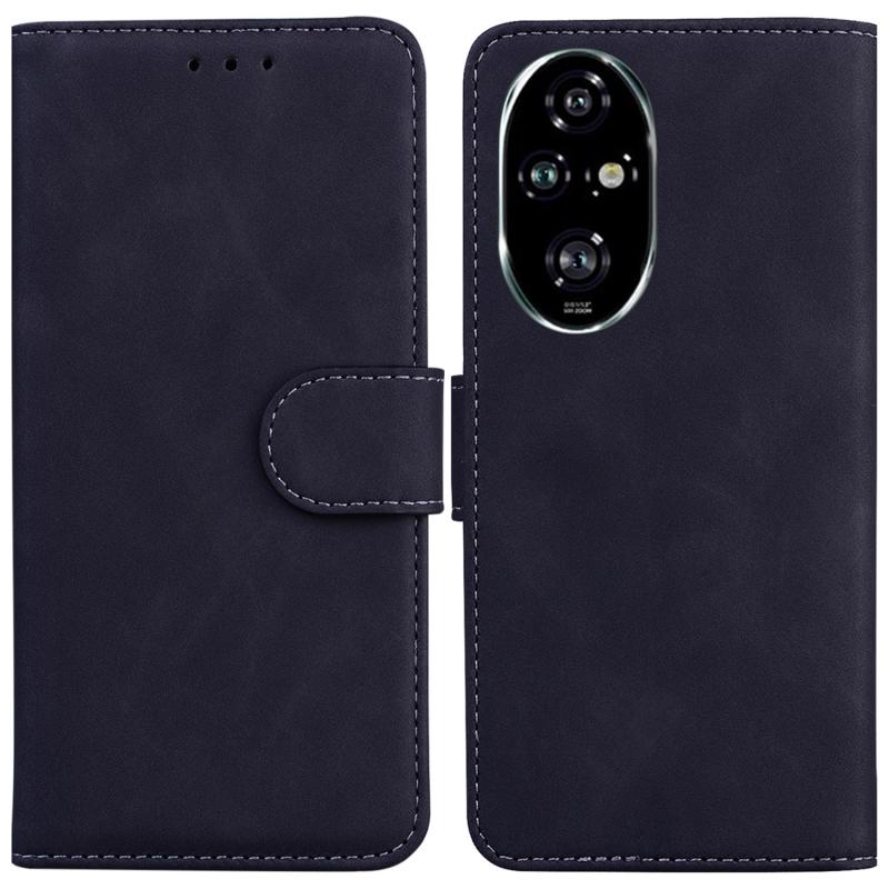 For Honor 200 Pro 5G Skin Feel Pure Color Flip Leather Phone Case(Black)