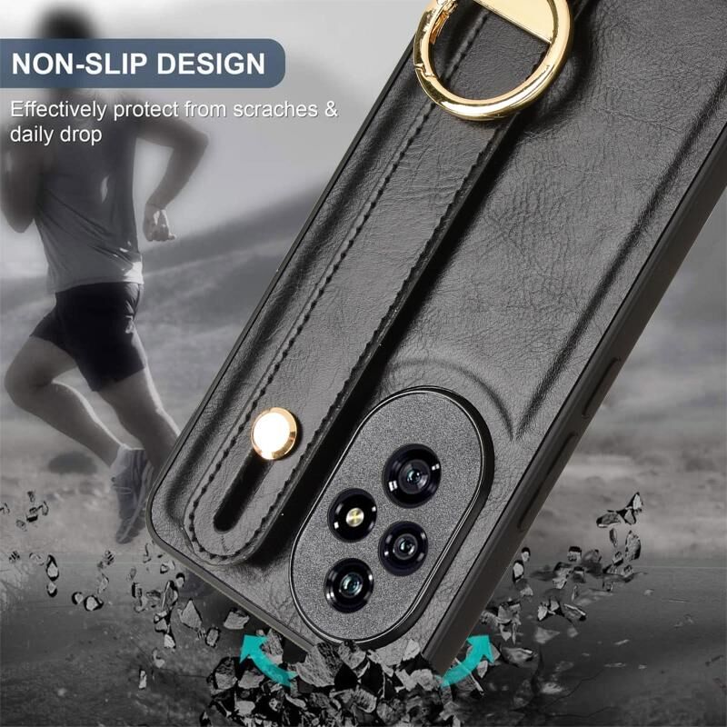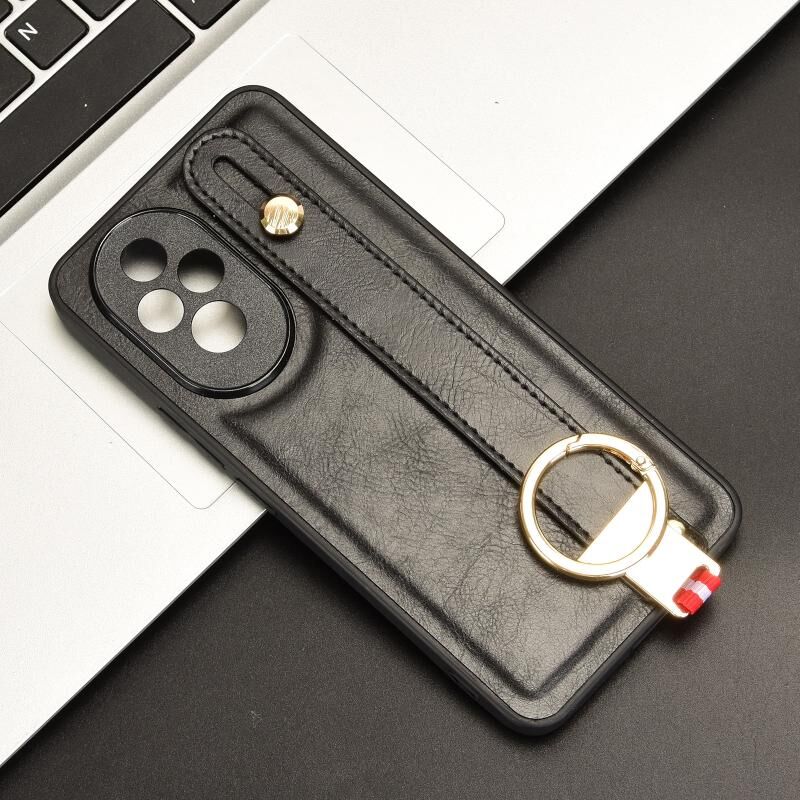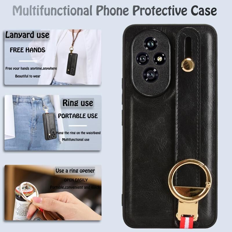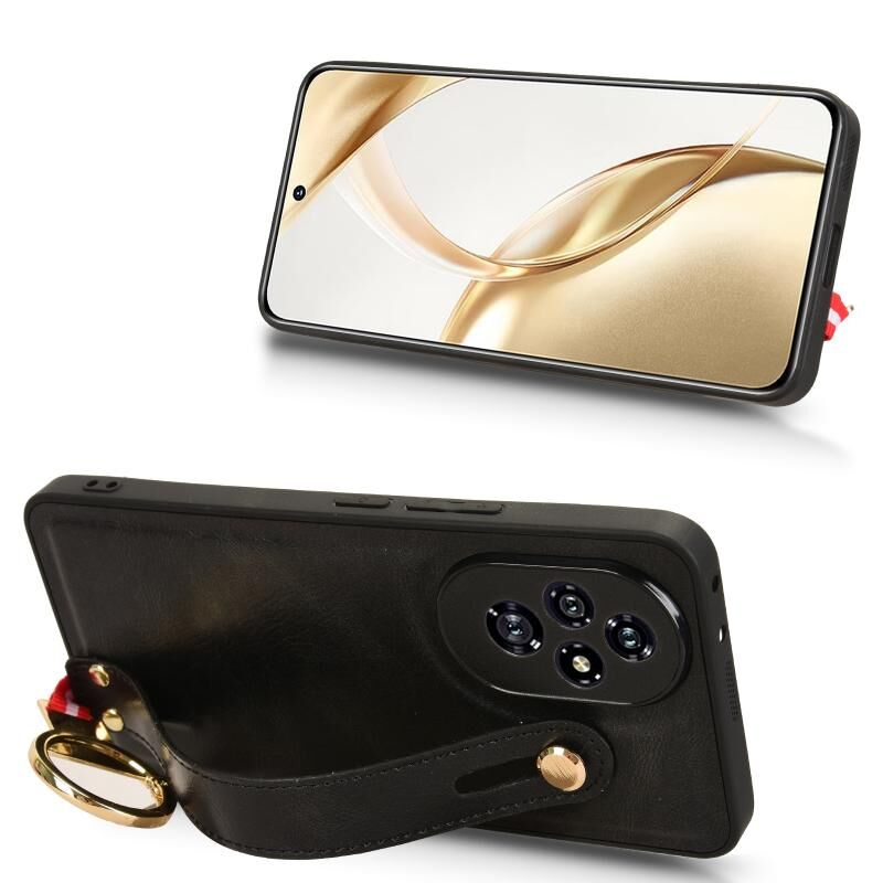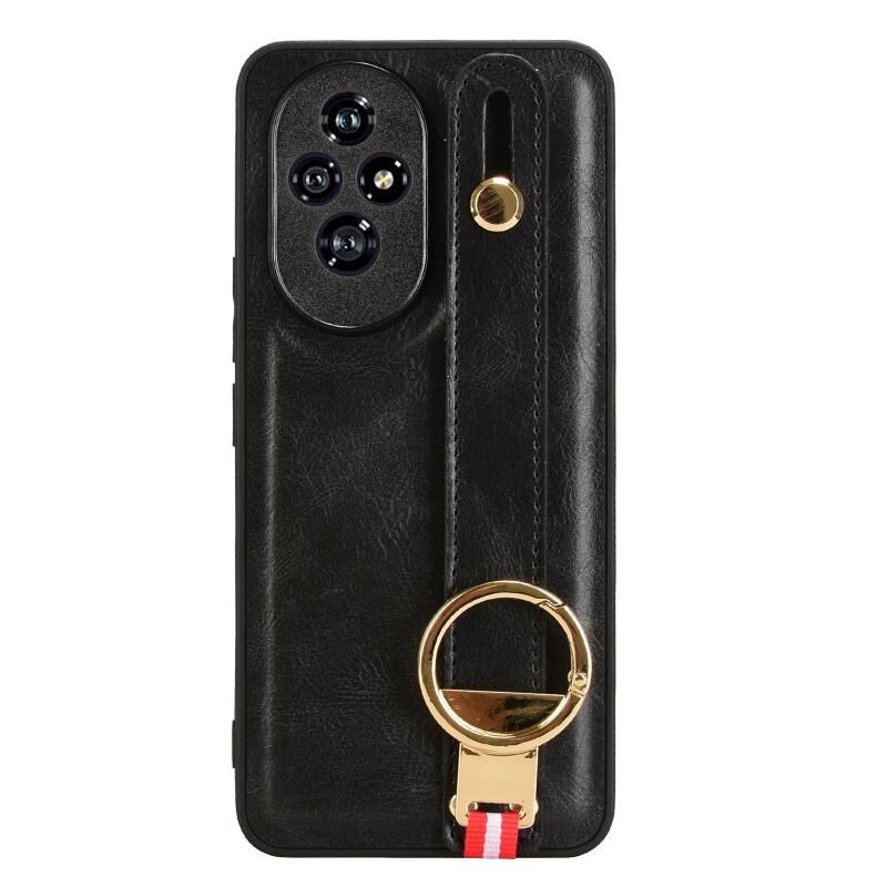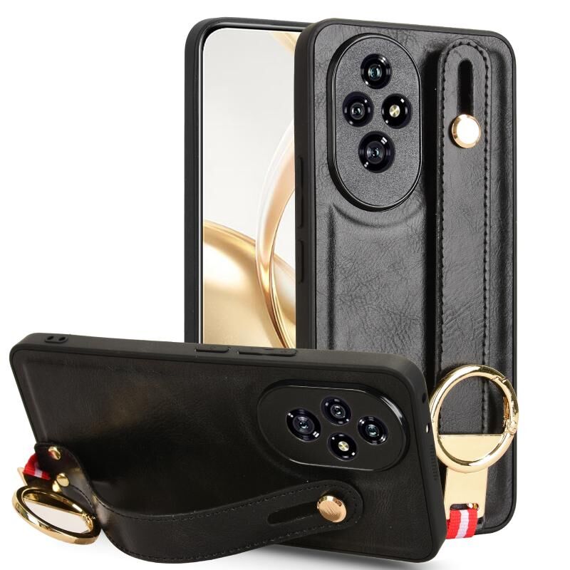 Για Honor 200 Pro 5G Wristband δέρμα πίσω τηλέφωνο υπόθεση (Μαύρο)