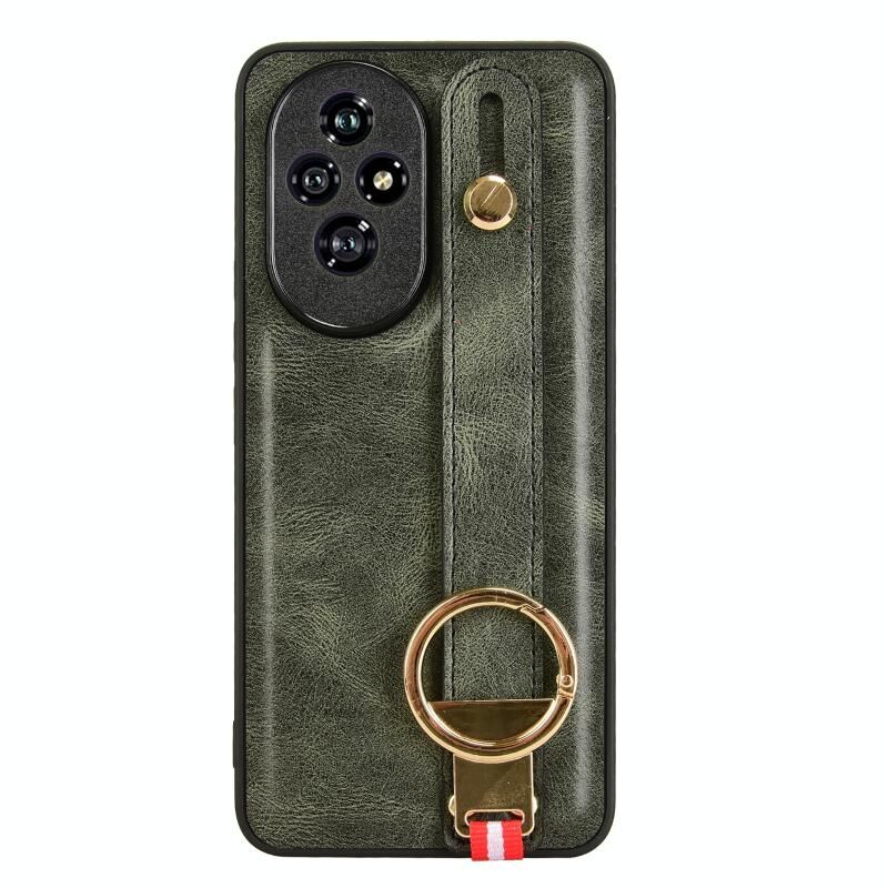 Για Honor 200 Pro 5G Wristband δέρμα πίσω τηλέφωνο υπόθεση (πράσινο)