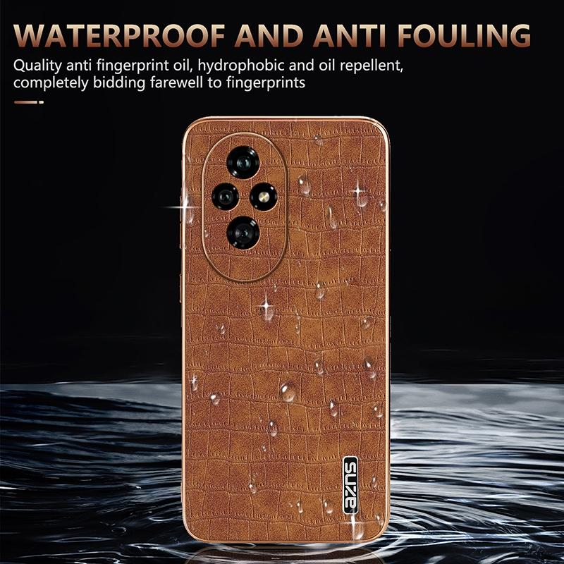 Θήκη κινητού τηλεφώνου For Honor 200 Pro AZNS Επιμεταλλωμένο πλαίσιο Υφή κροκόδειλου Πλήρης κάλυψη (Μαύρο) (Καφέ)