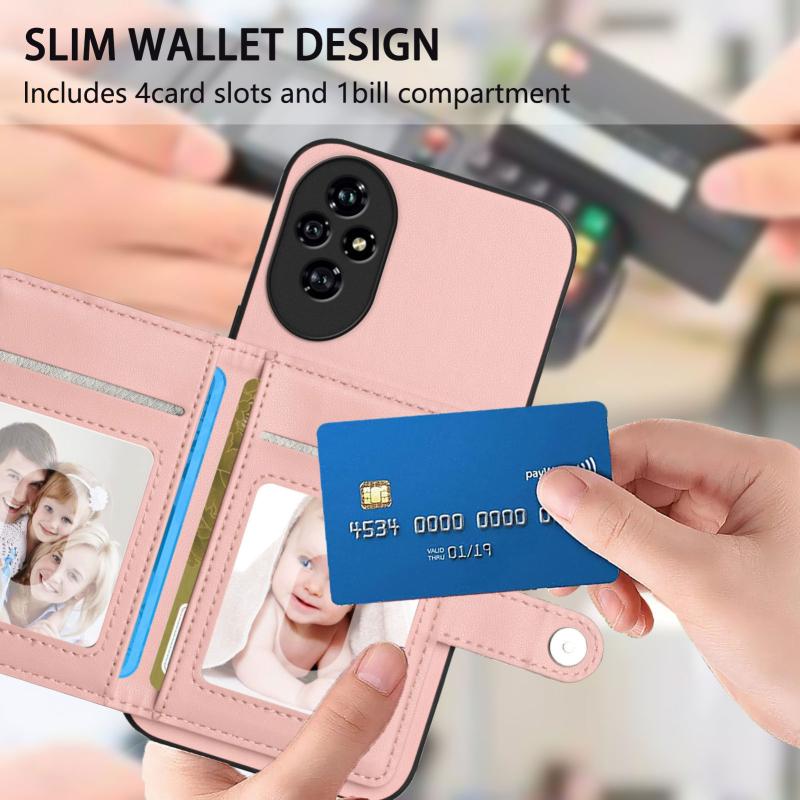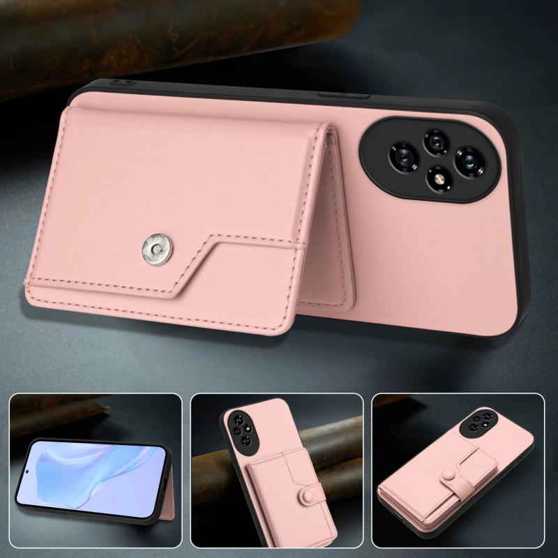 For Honor 200 Pro Button Card Bag RFID Anti-theft Phone Case(Pink)