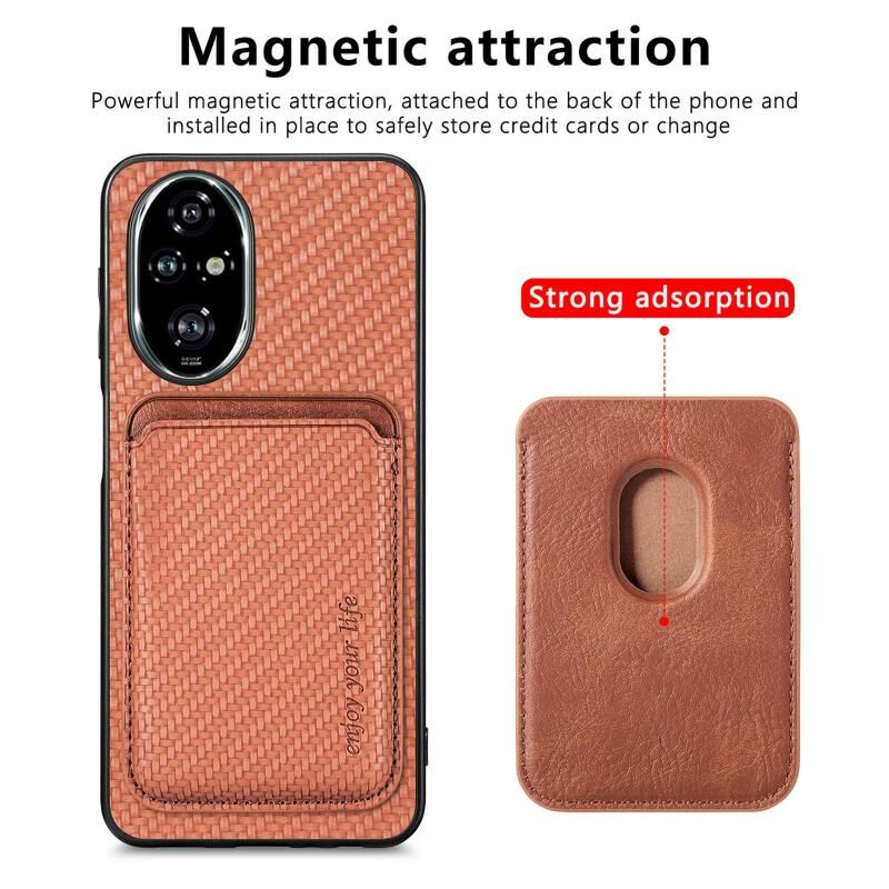 Θήκη τηλεφώνου Honor 200 Pro από ανθρακονήματα και δέρμα με κάρτες και MagSafe (Καφέ)