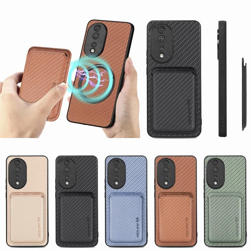Θήκη τηλεφώνου Honor 200 Pro από ανθρακονήματα και δέρμα με κάρτες και MagSafe (Χακί)