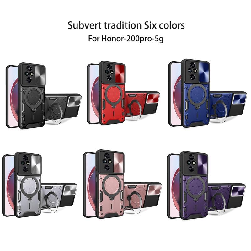 For Honor 200 Pro CD Texture Sliding Camshield Magnetic Holder Phone Case(Red)