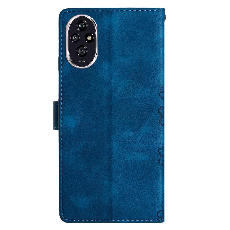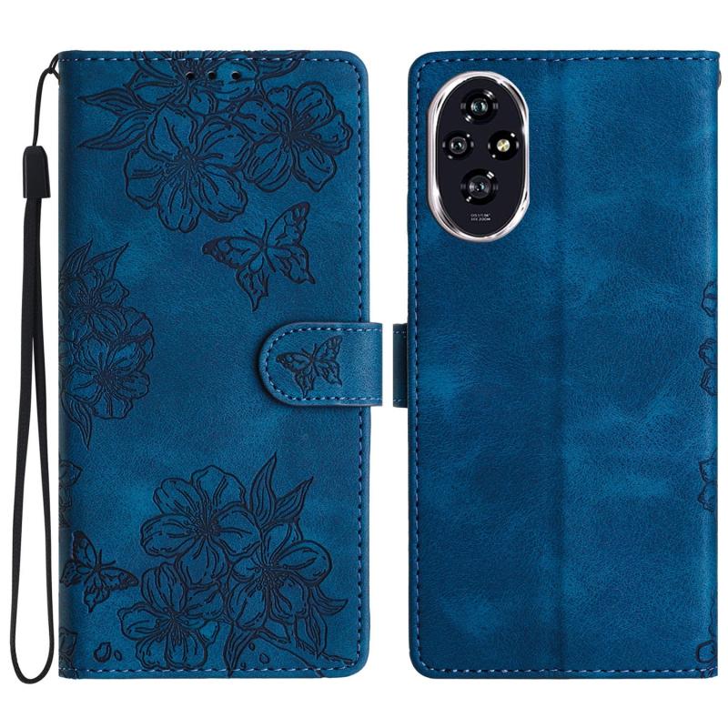 For Honor 200 Pro Cherry Blossom Butterfly Skin Feel Embossed PU Phone Case(Blue)