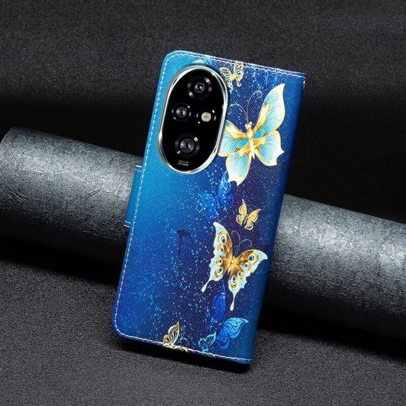 Θήκη τηλεφώνου από δέρμα με έγχρωμο σχέδιο (Χρυσή Πεταλούδα) για Honor 200 Pro