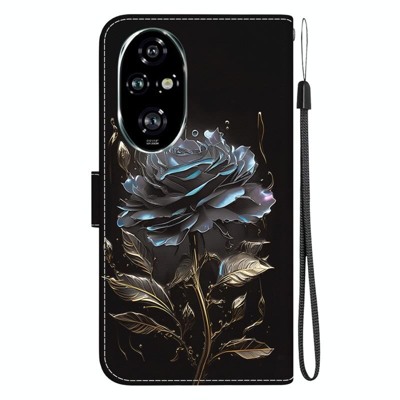 Θήκη τηλεφώνου από δέρμα με σχέδιο και κρυστάλλινη υφή για Honor 200 Pro (Μωβ Παιώνια)