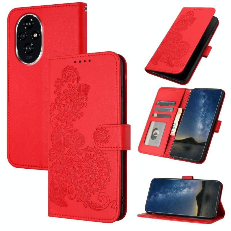 Για Honor 200 Pro Datura λουλούδι ανάγλυφο Flip δερμάτινη θήκη τηλεφώνου (κόκκινο)