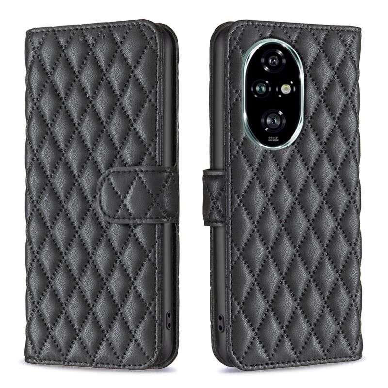Για Honor 200 Pro Diamond Lattice πορτοφόλι Flip δέρμα τηλέφωνο υπόθεση (Μαύρο)