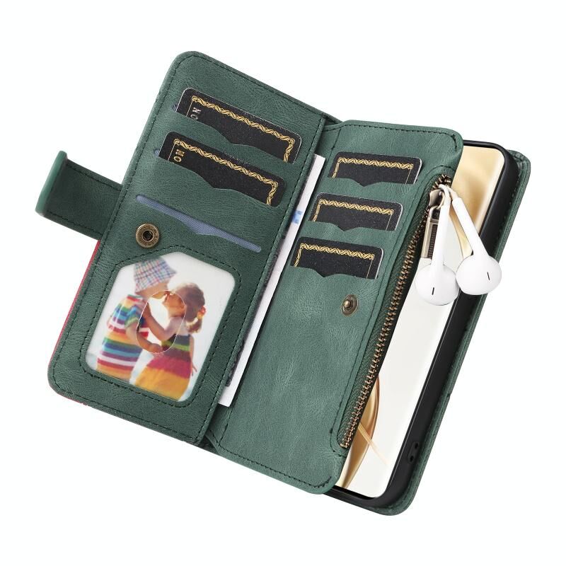 Για Honor 200 Pro Διπλό χρώμα 9 υποδοχές καρτών φερμουάρ πορτοφόλι δερμάτινη θήκη τηλεφώνου (πράσινο)