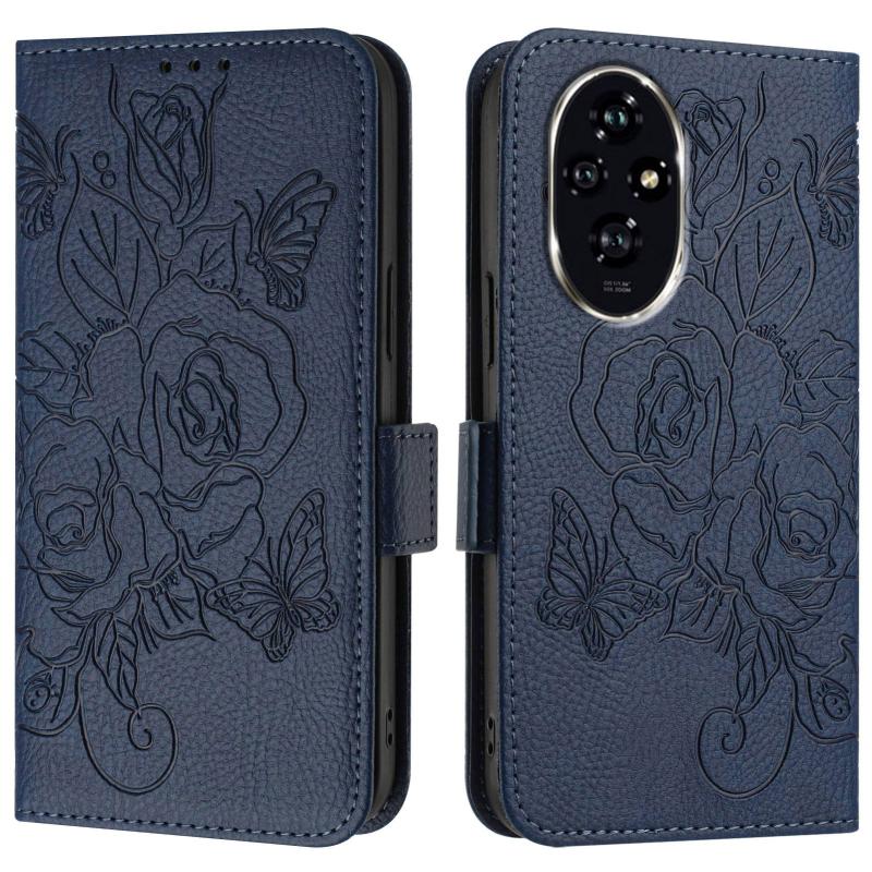 For Honor 200 Pro Embossed Rose RFID Anti-theft Leather Phone Case(Dark Blue)