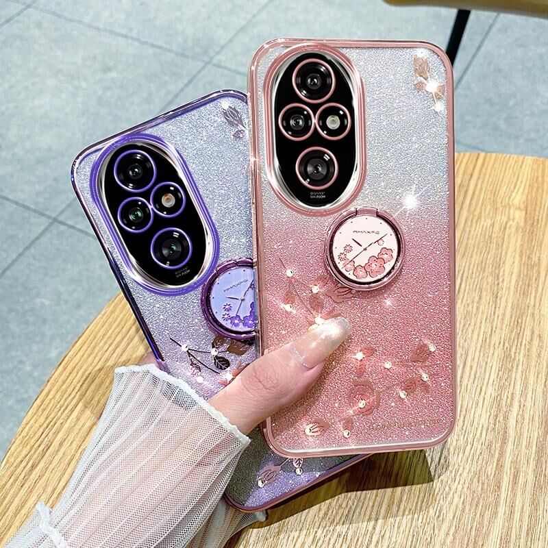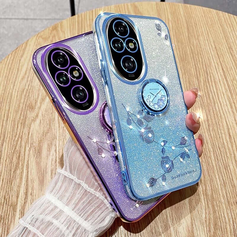Θήκη κινητού τηλεφώνου Honor 200 Pro Gradient Glitter Immortal Flower Ring All-inclusive (Μπλε)
