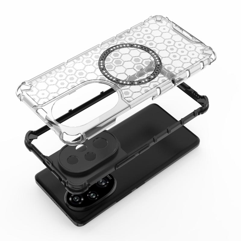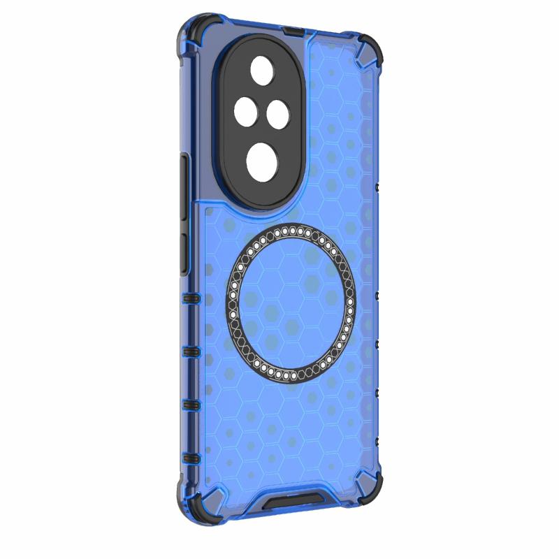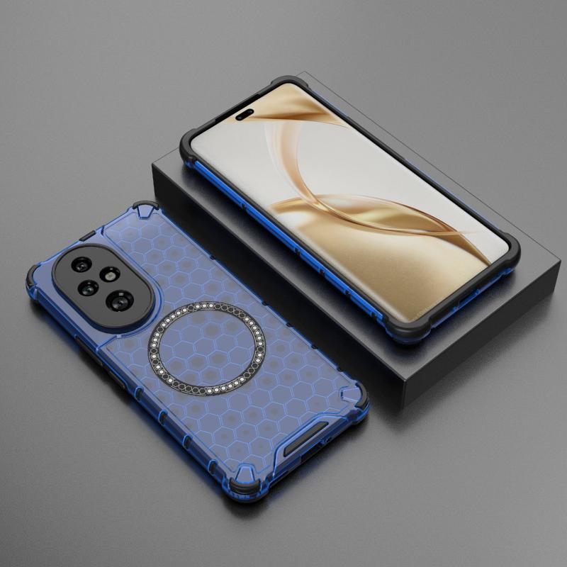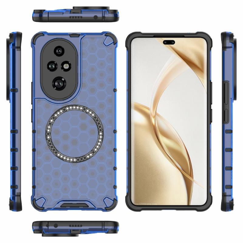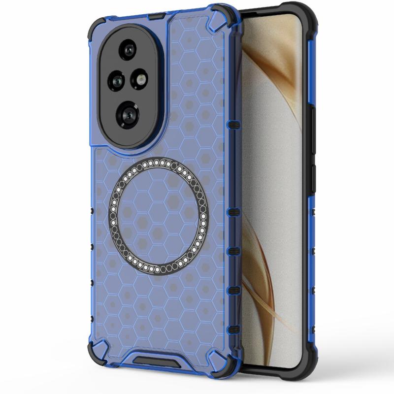 For Honor 200 Pro Honeycomb Magnetic Ring Shockproof Phone Case(Blue)