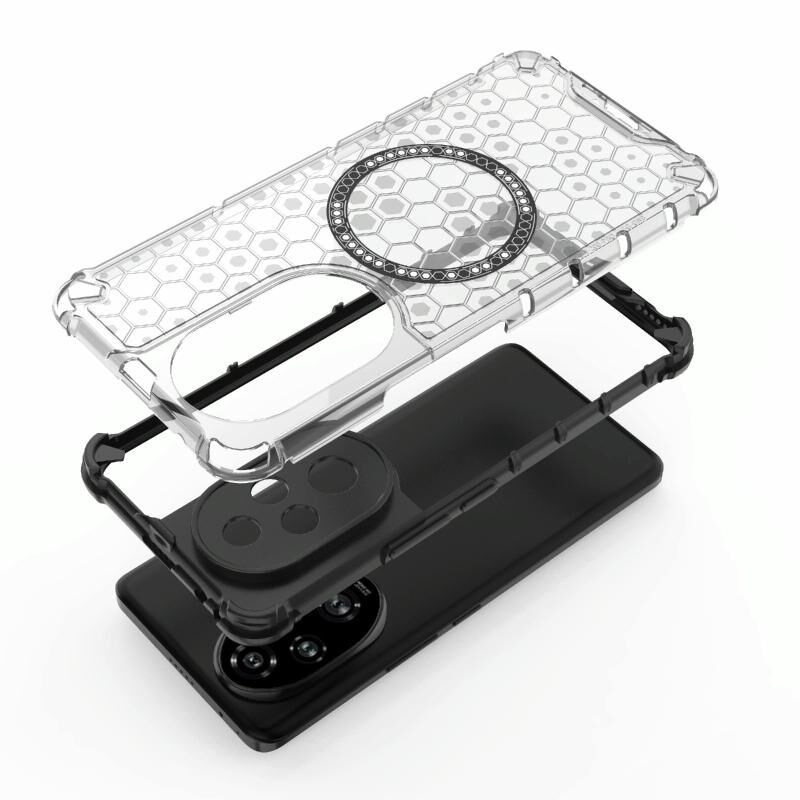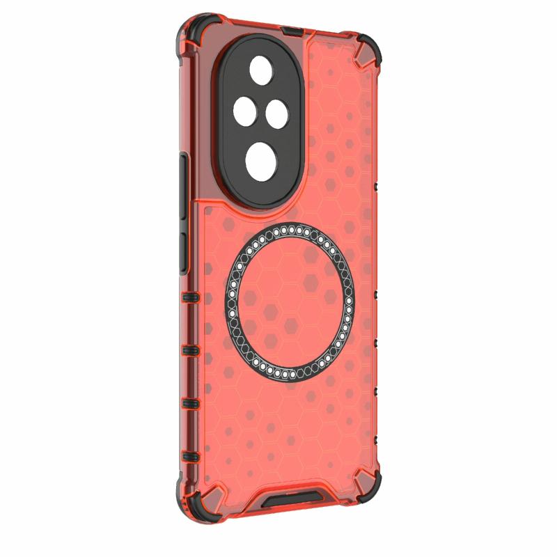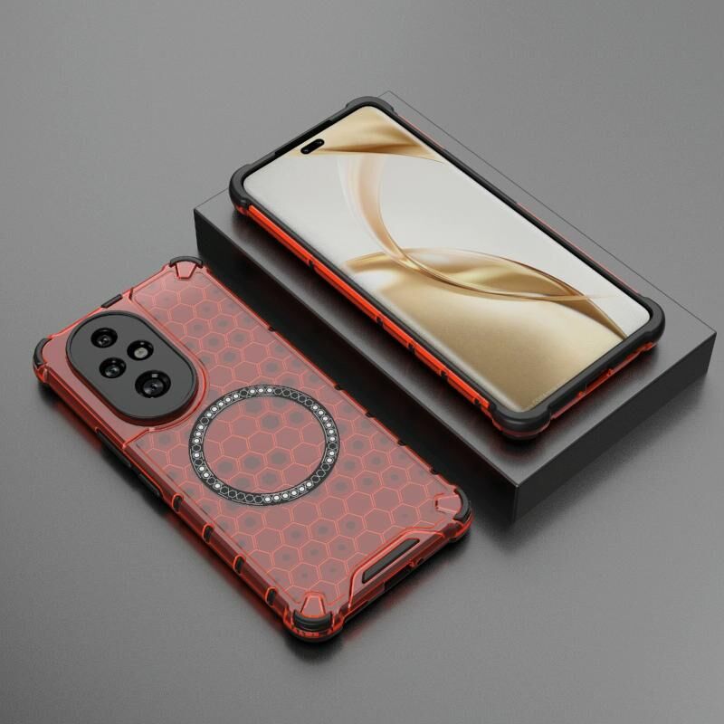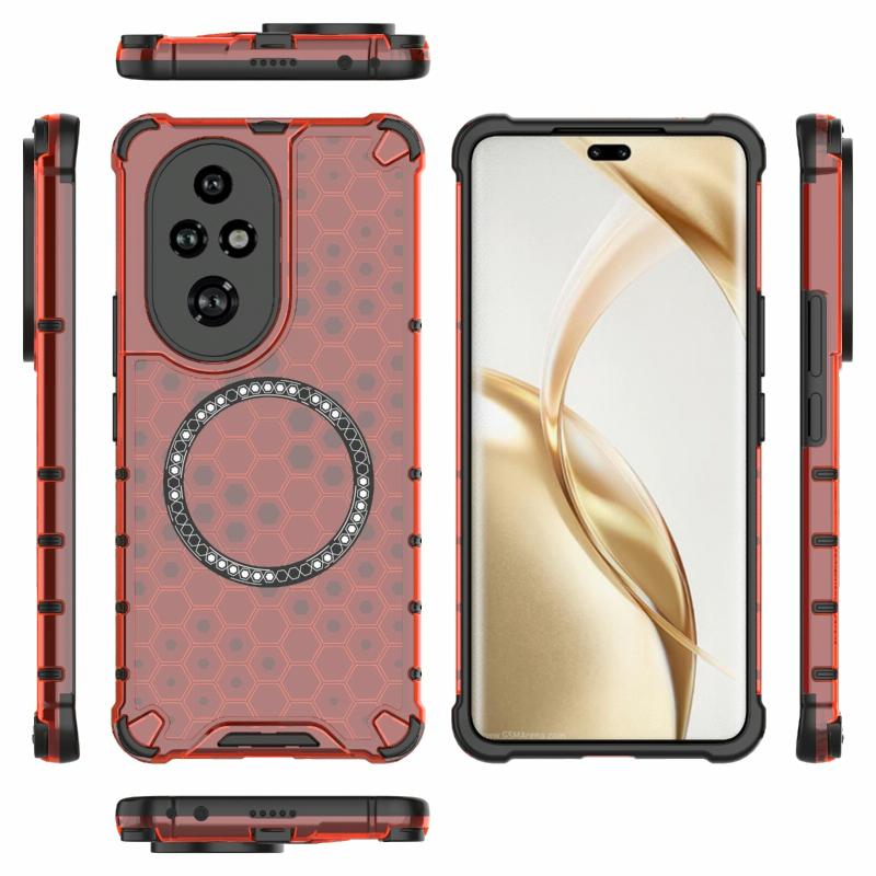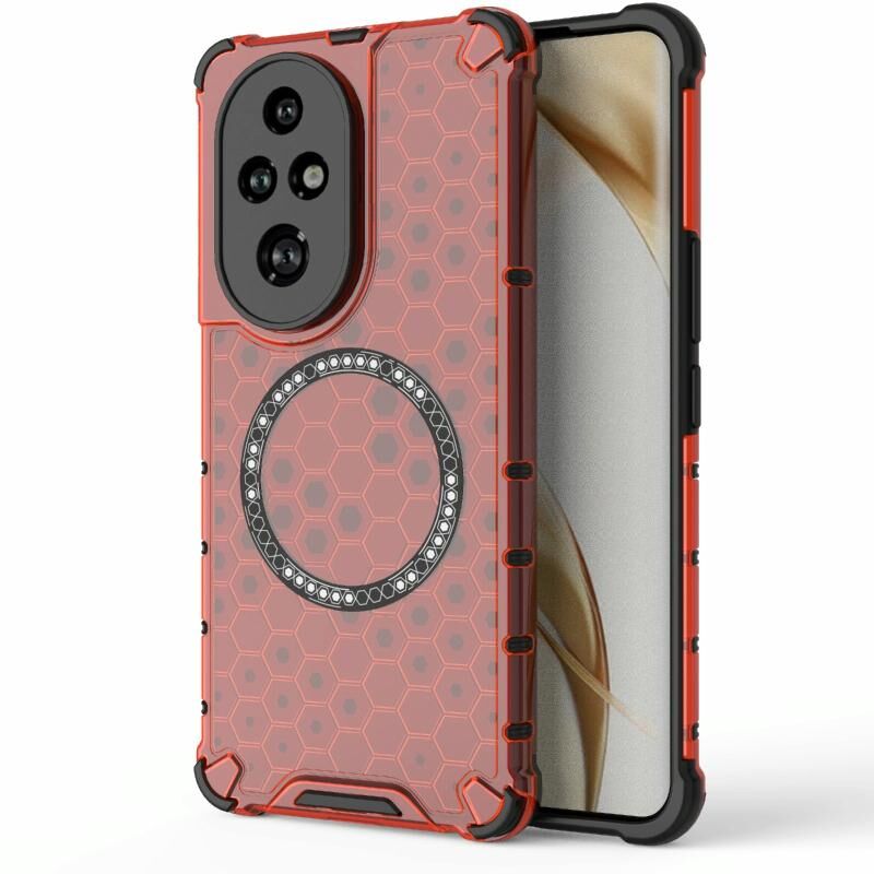 For Honor 200 Pro Honeycomb Magnetic Ring Shockproof Phone Case(Red)
