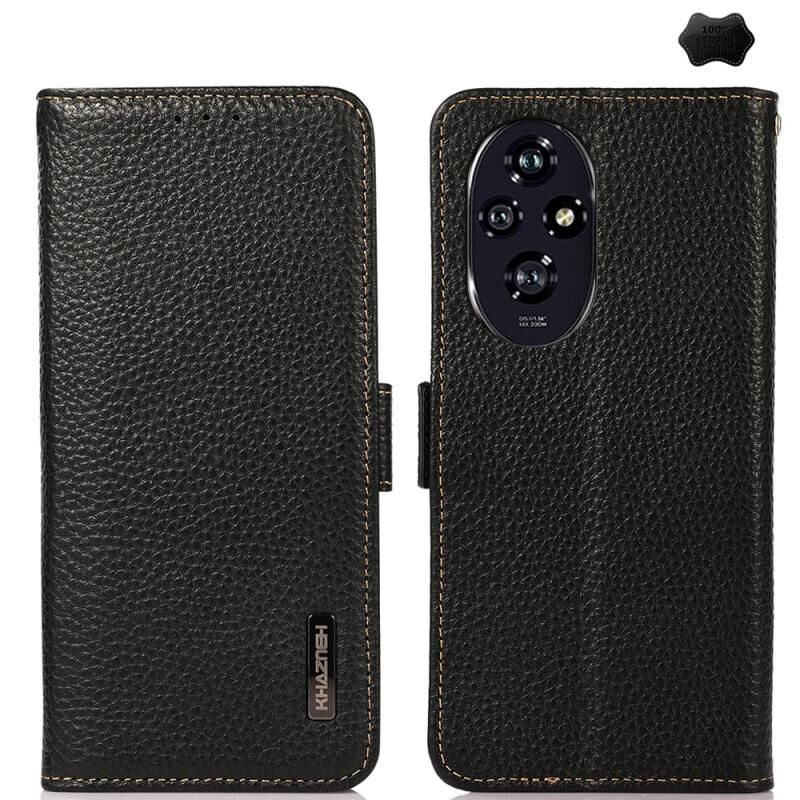 For Honor 200 Pro KHAZNEH Side-Magnetic Litchi Genuine Leather RFID Phone Case(Black)