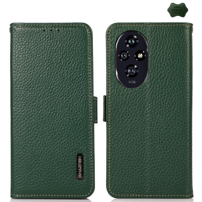 Θήκη κινητού τηλεφώνου Honor 200 Pro KHAZNEH με μαγνητική πλευρά, γνήσιο δέρμα Litchi, RFID (Μαύρο)