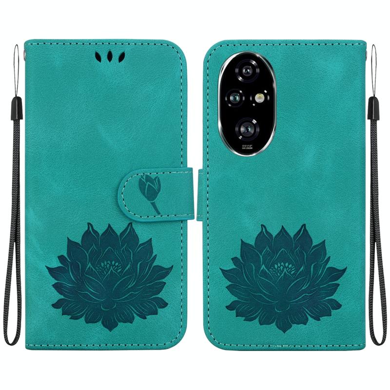 For Honor 200 Pro Lotus Embossed Leather Phone Case(Green)