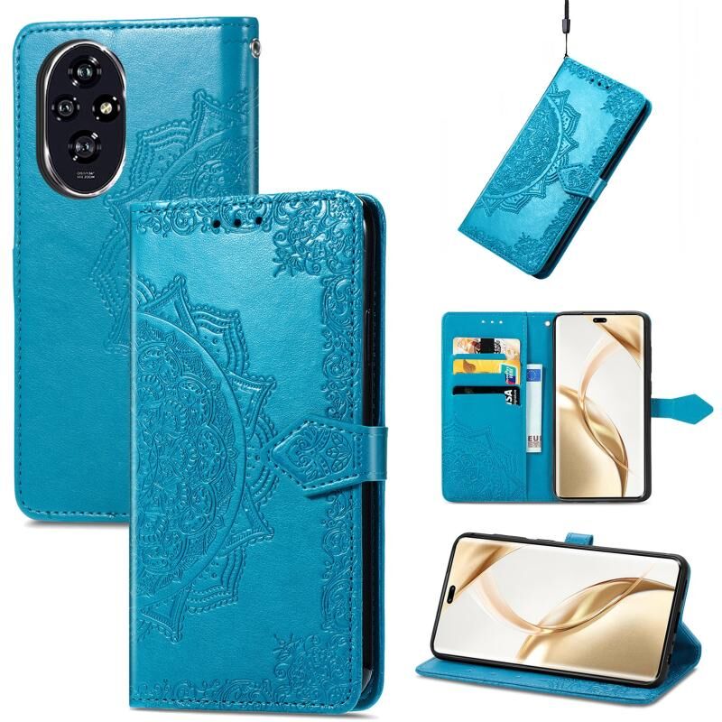 Για Honor 200 Pro Mandala λουλούδι ανάγλυφο δερμάτινη θήκη τηλεφώνου (μπλε)