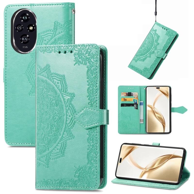 Για Honor 200 Pro Mandala λουλούδι ανάγλυφο δερμάτινη θήκη τηλεφώνου (πράσινο)