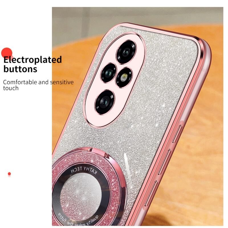 Για Honor 200 Pro επιμεταλλωμένο βαθμιδωτή Glitter στρογγυλή θήκη TPU τηλέφωνο κάτοχος (Μαύρο)