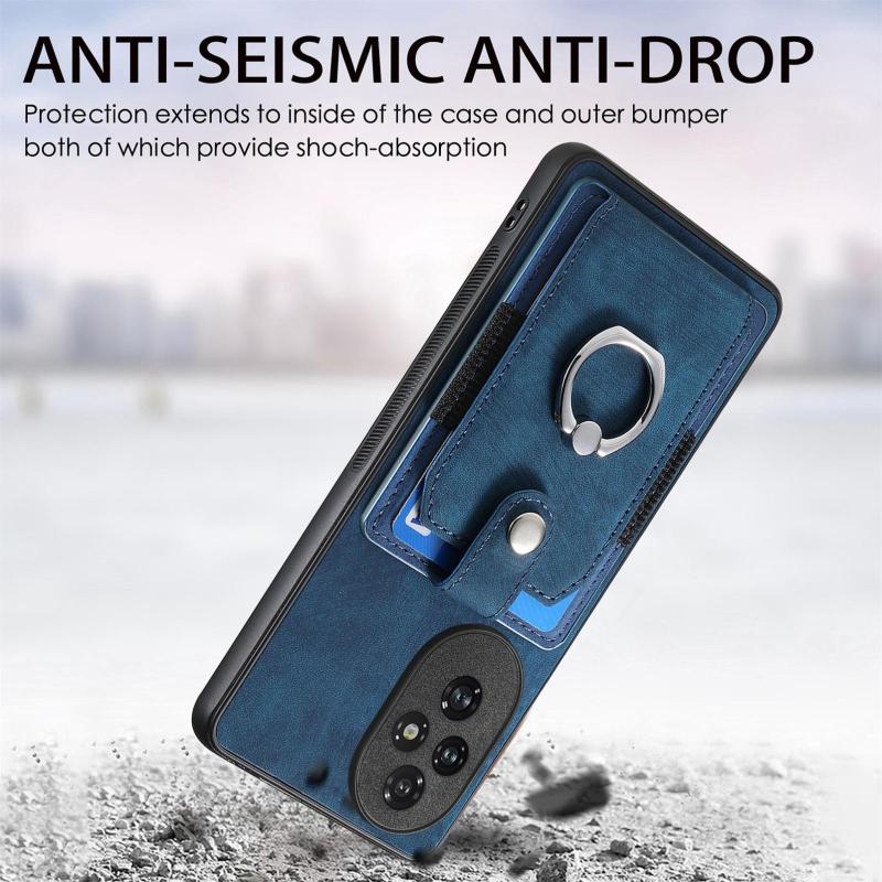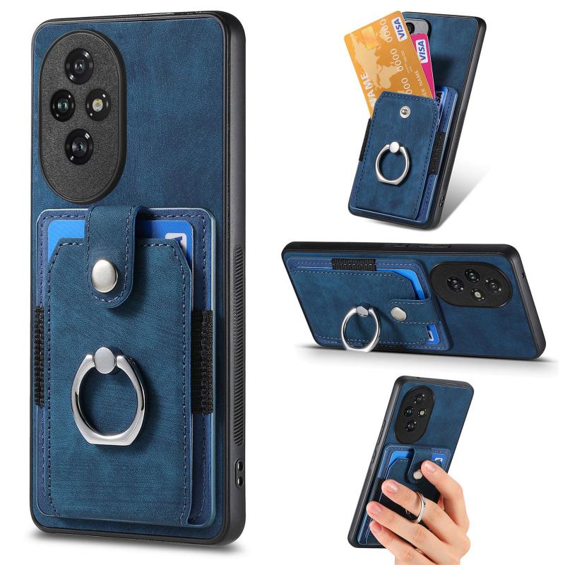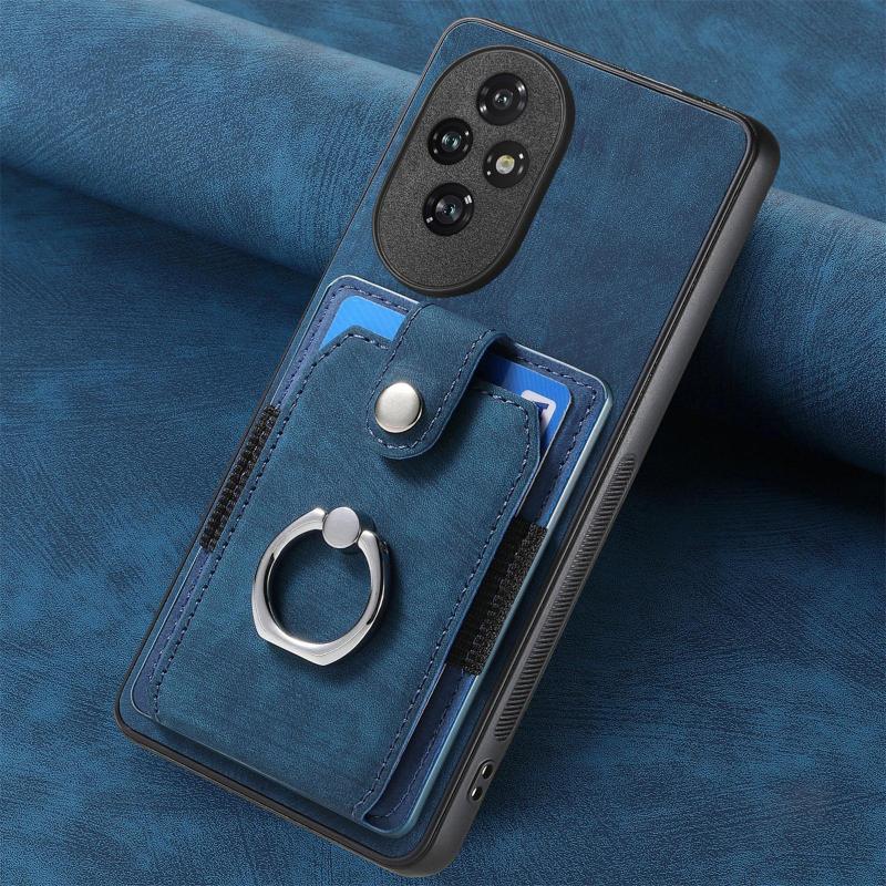 Θήκη κινητού τηλεφώνου Honor 200 Pro με υφή retro και κάρτες σε στυλ δακτυλιδιού (Μπλε)