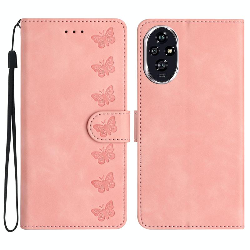 Θήκη τηλεφώνου Honor 200 Pro Seven Butterflies Embossed Leather (Μπλε)