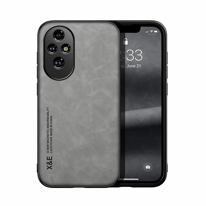 Θήκη κινητού τηλεφώνου Honor 200 Pro με μαγνητική δερμάτινη πλάτη (Ανοιχτό Γκρι)