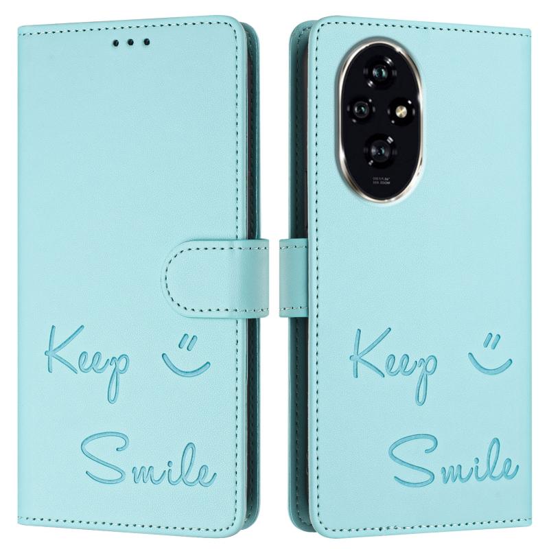 For Honor 200 Pro Smile Embossing RFID Leather Phone Case(Mint Green)