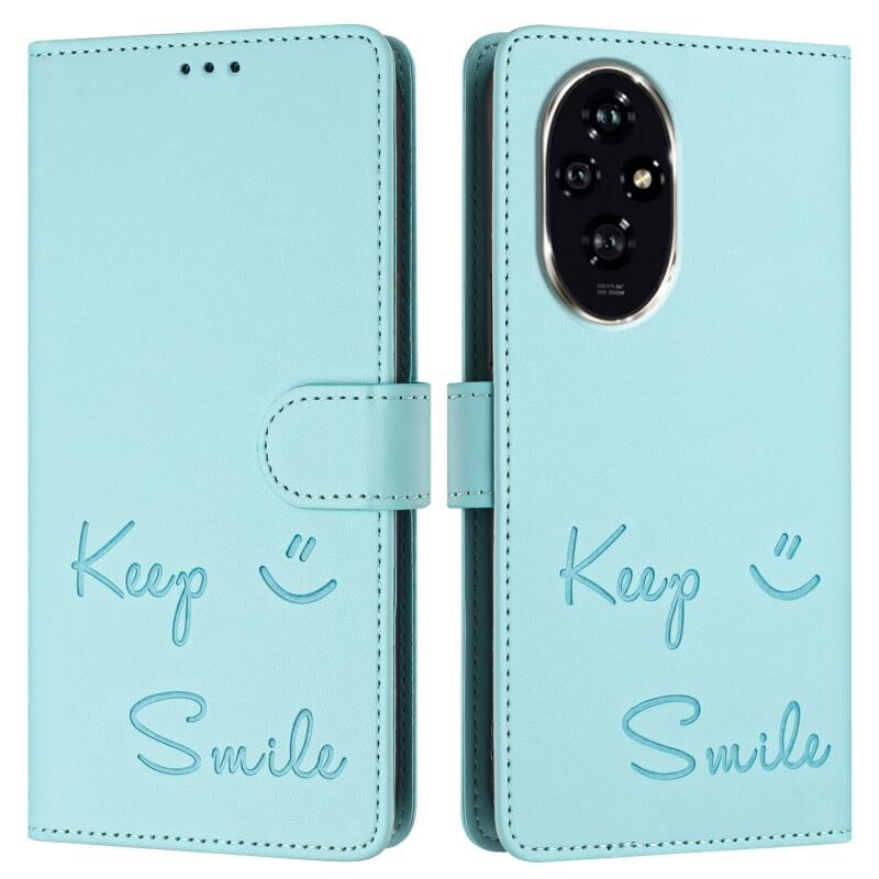 Θήκη τηλεφώνου από δέρμα με ανάγλυφο χαμόγελο και RFID για Honor 200 Pro (Μέντας πράσινο)