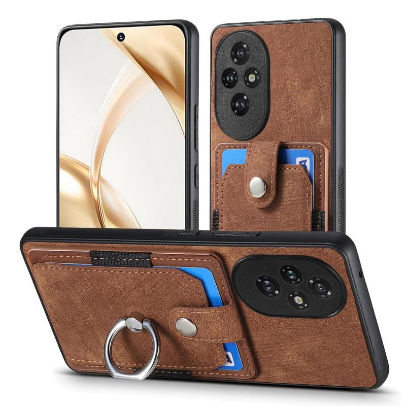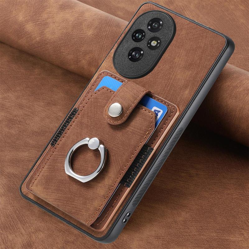 Θήκη κινητού τηλεφώνου Honor 200 με υφή retro, κάρτα-πορτοφόλι με δακτύλιο (Καφέ)