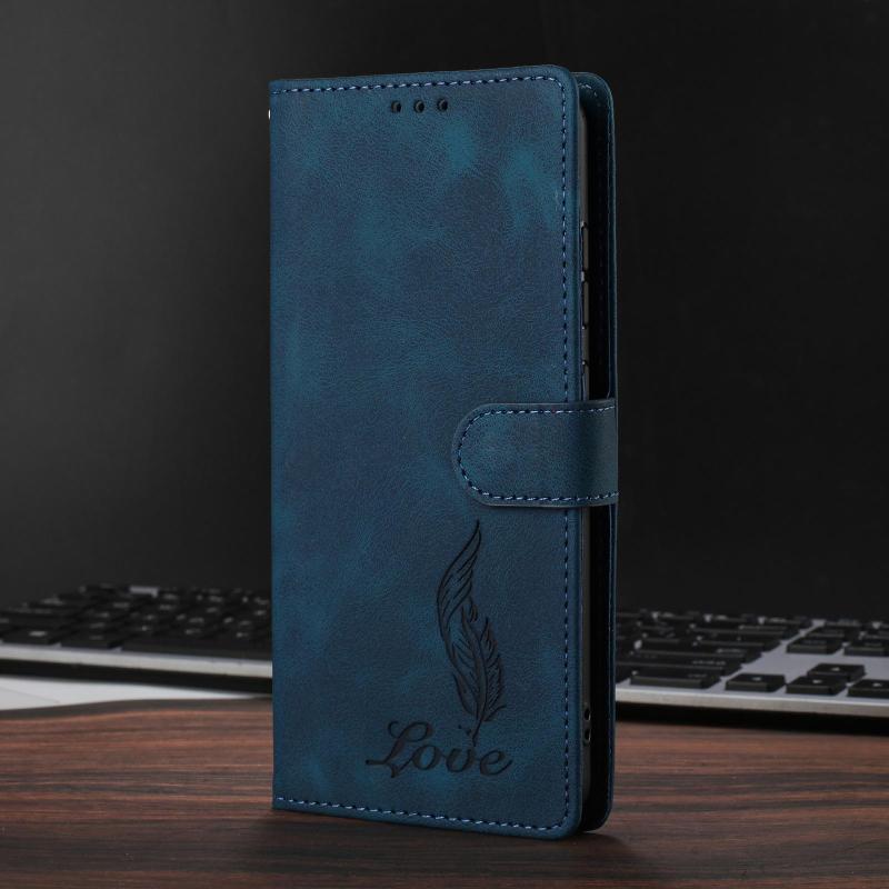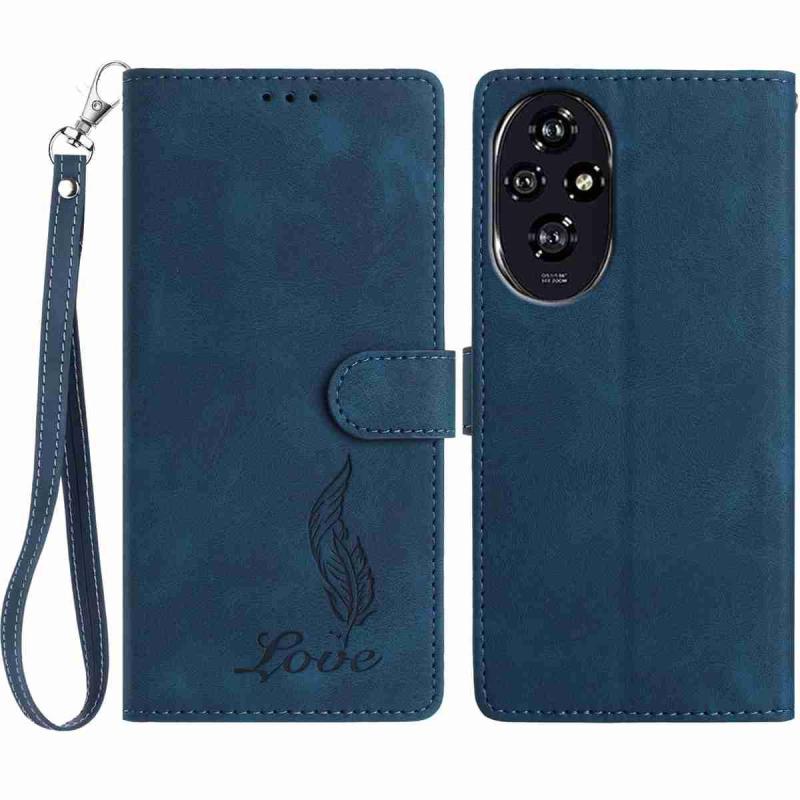For Honor 200 Skin Feel Embossed Feather Leather Phone Case(Dark Blue)