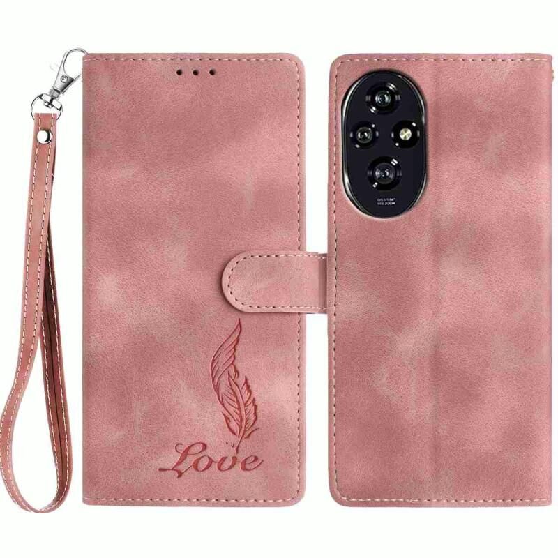 For Honor 200 Skin Feel Embossed Feather Leather Phone Case(Pink)