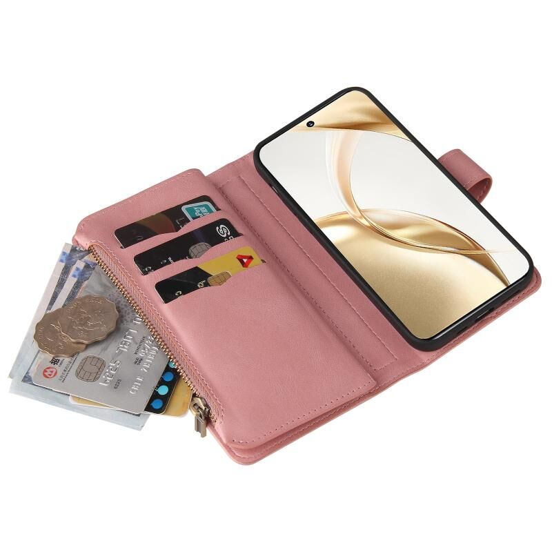 Για Honor 200 δέρμα αίσθηση πολλαπλών καρτών υποδοχές φερμουάρ πορτοφόλι δερμάτινη θήκη τηλεφώνου (ρόζ)