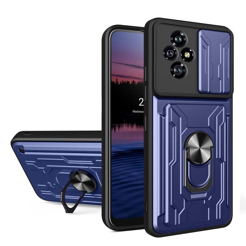 Θήκη κινητού τηλεφώνου For Honor 200 με συρόμενο προστατευτικό κάμερας TPU+PC και θήκη για κάρτες (Μπλε)
