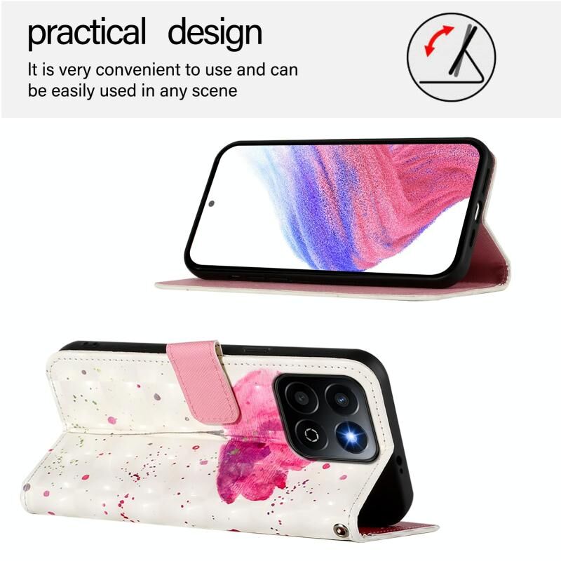 Θήκη τηλεφώνου από δέρμα με οριζόντια αναδίπλωση και τρισδιάστατη βαφή για Honor 200 Smart 5G Global (Λουλούδι)