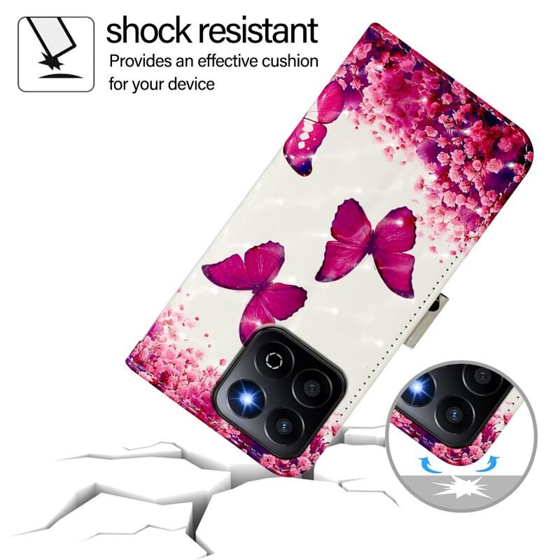 Θήκη τηλεφώνου από δέρμα με οριζόντια αναδίπλωση και τρισδιάστατη βαφή για Honor 200 Smart 5G Global (Ροζ Πεταλούδα)