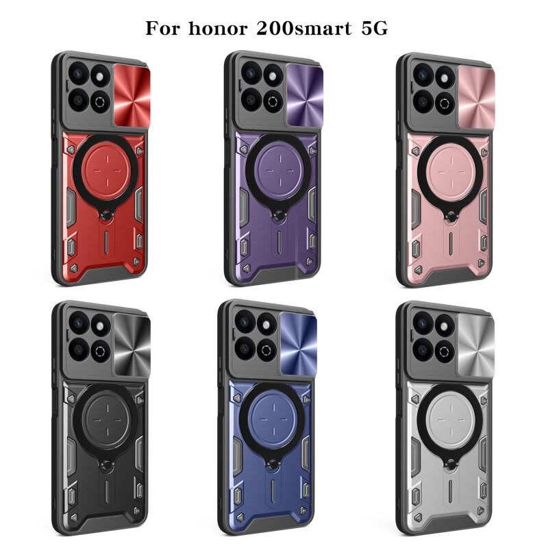 Θήκη κινητού τηλεφώνου για Honor 200 Smart CD Texture με ολισθαίνουσα προστασία κάμερας και μαγνητική βάση (Κόκκινο)