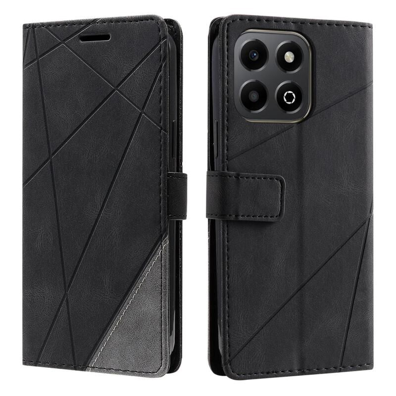 Θήκη τηλεφώνου από δέρμα με ραφές και έξυπνη αίσθηση για Honor 200 (Μαύρο)