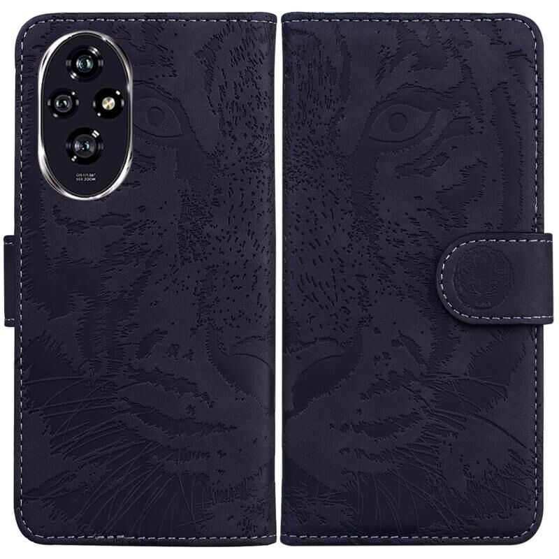 Θήκη τηλεφώνου από δέρμα με σχέδιο Tiger Embossing για Honor 200 (Μαύρο)