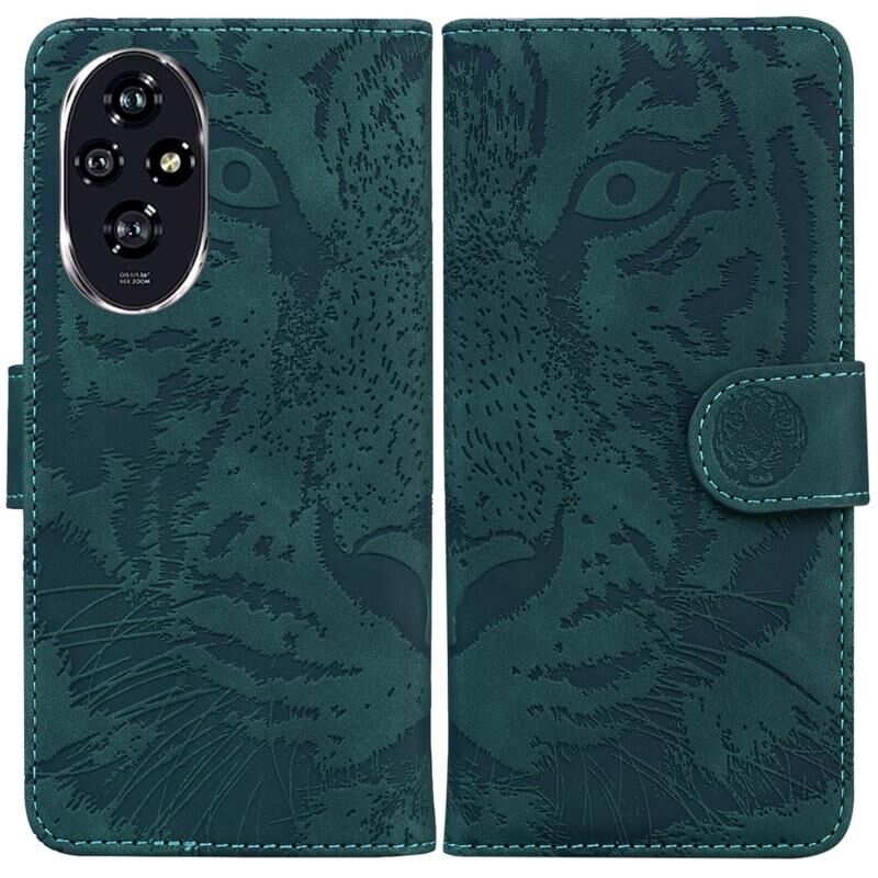 For Honor 200 Tiger Embossing Pattern Flip Leather Phone Case(Green)