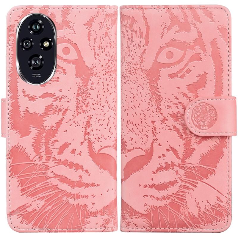 For Honor 200 Tiger Embossing Pattern Flip Leather Phone Case(Pink)