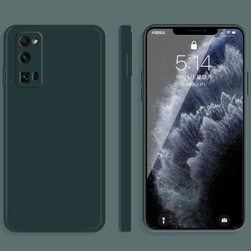 Θήκη προστασίας πλήρους κάλυψης με ευθεία άκρη, αντιολισθητική, ανθεκτική σε πτώσεις, από υγρή σιλικόνη με απομίμηση συμπαγούς χρώματος για Honor 30 Pro (Σκούρο πράσινο)