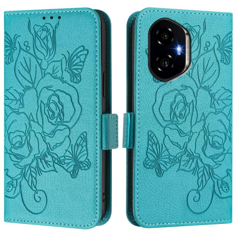 Θήκη τηλεφώνου δερμάτινη με ανάγλυφο σχέδιο τριαντάφυλλου και προστασία RFID κατά της κλοπής για Honor 300 5G (Πράσινο)