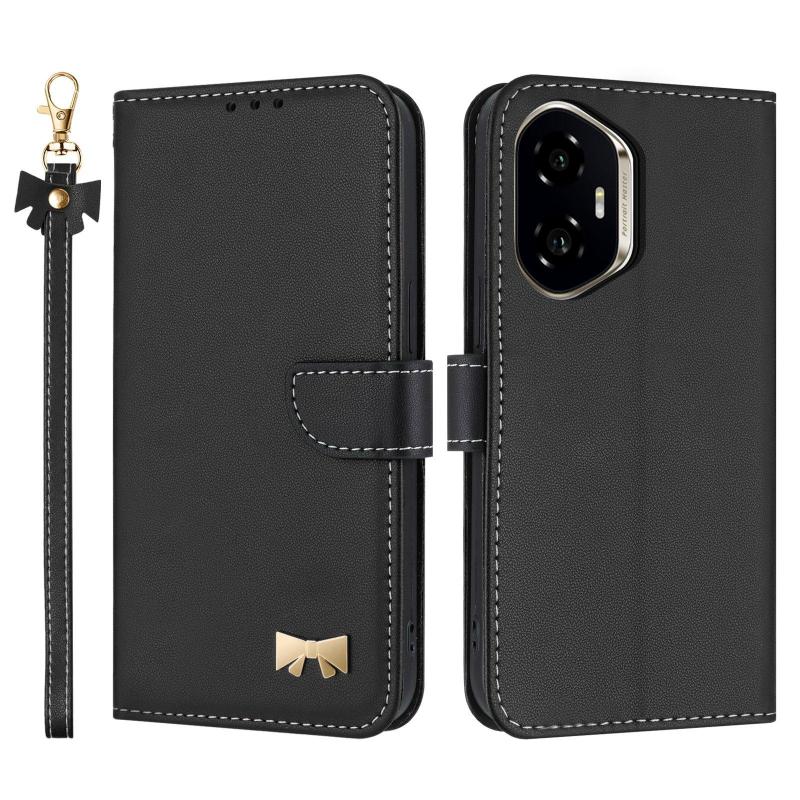 Θήκη κινητού τηλεφώνου Honor 300 5G από μέταλλο και δέρμα με λουρί χειρός (Κόκκινο)