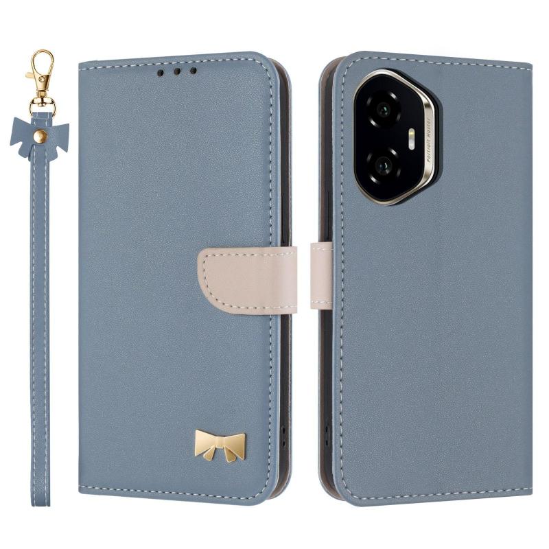 For Honor 300 5G Metal Bow Leather Phone Case with Hand Strap(Light Blue)
