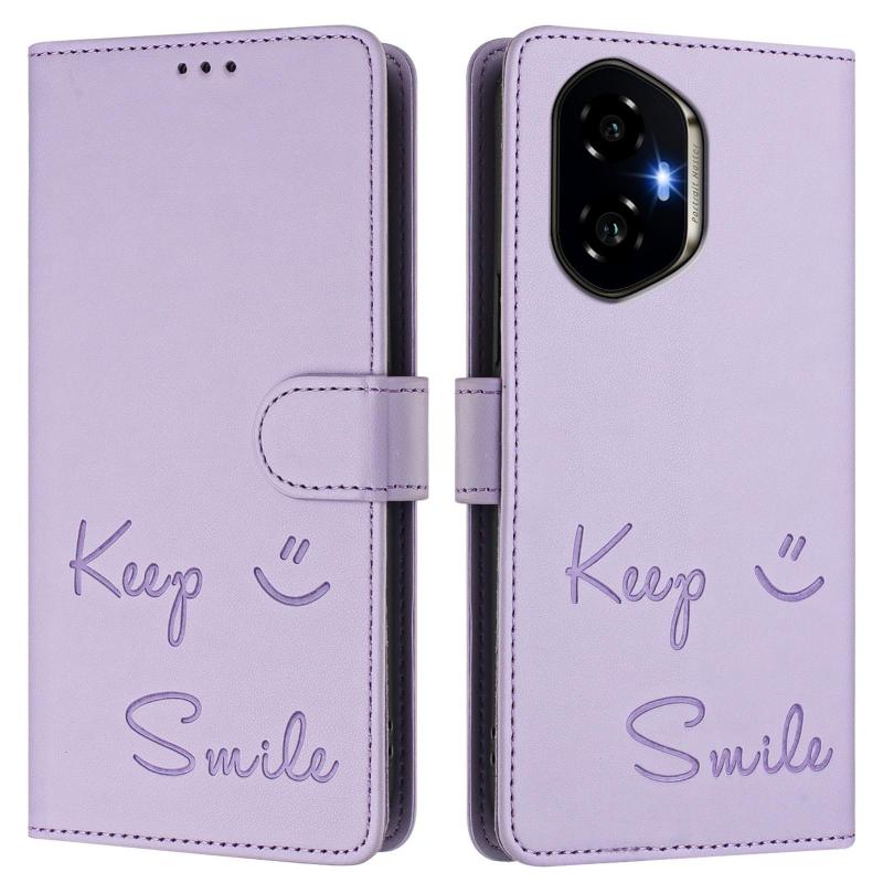 For Honor 300 5G Smile Embossing RFID Leather Phone Case(Light Purple)