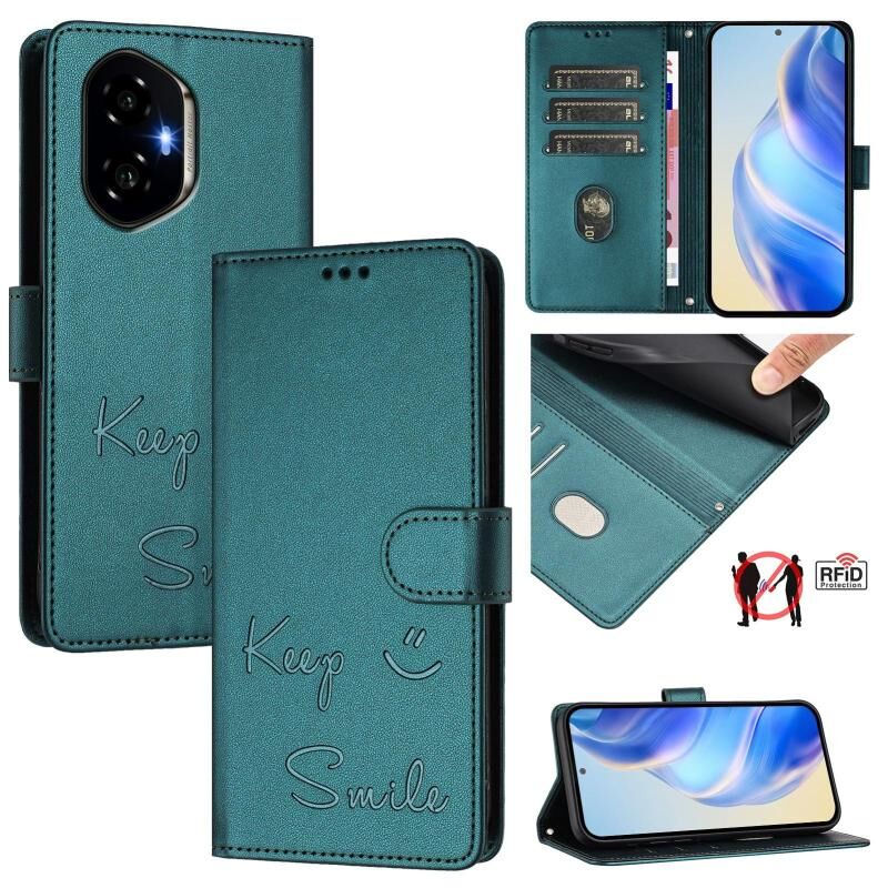 Θήκη τηλεφώνου από δέρμα με ανάγλυφο χαμόγελο και RFID για Honor 300 5G (Μέντας Πράσινο)