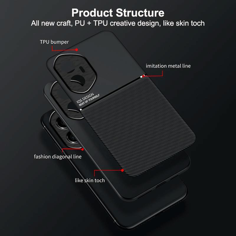 For Honor 300 Classic Tilt Strip Grain Magnetic PC Hybrid TPU Phone Case(Black)
